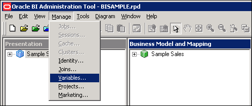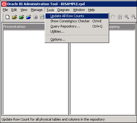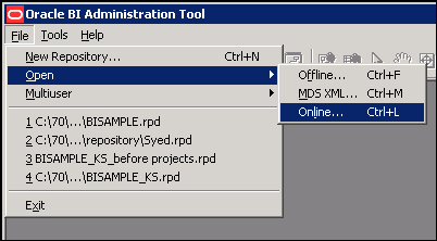 Select Start > Programs > Oracle Business Intelligence > BI Administration to open the Administration Tool.