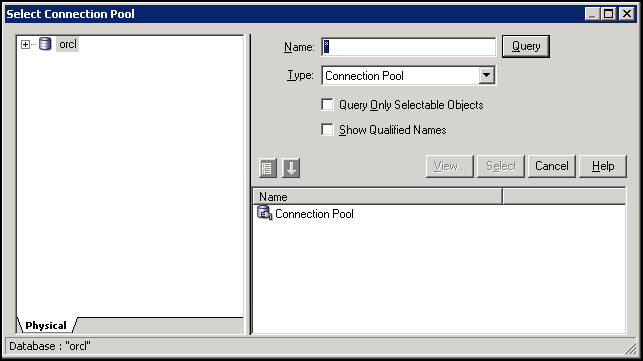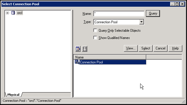 The Connection Pool dialog box appears. Accept the defaults and click OK.