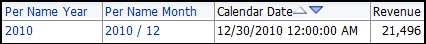 Create the following new analysis and filter to test the PERIODROLLING function at the month grain: