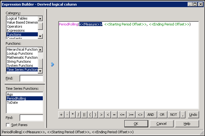 Select Functions > Time Series Functions and double-click PeriodRolling to insert the expression.
