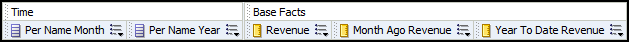 Drag the Month Ago Revenue logical column to the Base Facts presentation folder.