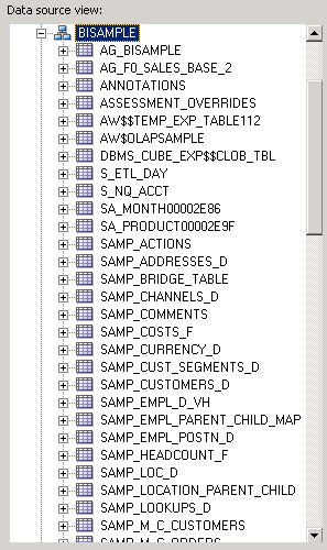 In the Data source view, expand the BISAMPLE schema.