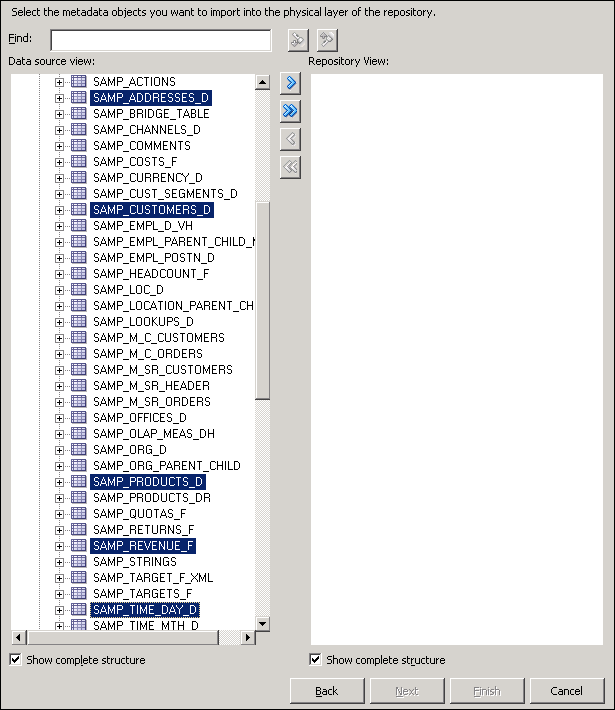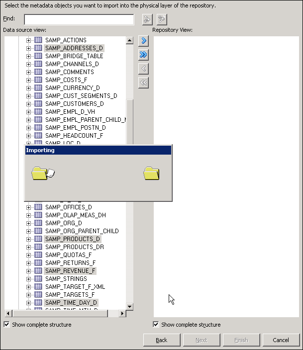 Click the Import Selected button to add the tables to the Repository View.