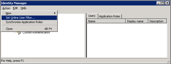 When setting up query logging, you must select Action > Set Online User Filter in Identity Manager to view users in the repository.