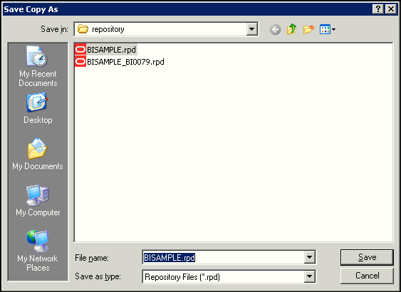 Select File > Save or click the Save button on the toolbar to save the repository.
