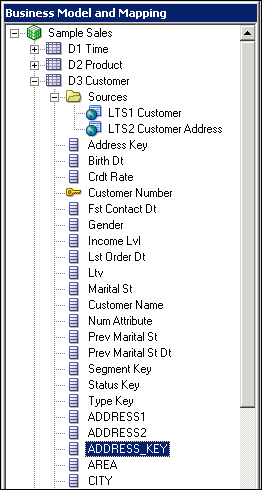 The main purpose of the business model is to capture how users think about their business using their own vocabulary. The business model simplifies the physical schema and maps the users’ business vocabulary to physical sources. Most of the vocabulary translates into logical columns in the business model. Collections of logical columns form logical tables. Each logical column (and hence each logical table) can have one or more physical objects as sources.