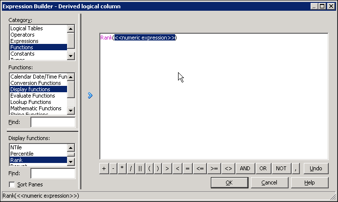 Click OK to close the Expression Builder. Check your work in the Logical Column dialog box: