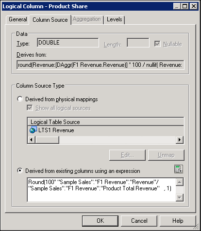Click OK to close the Logical Column dialog box.