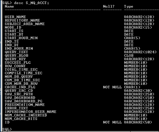SQL>Desc S_NQ_ACCT;