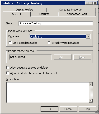 Set the UsageTrackingConnectionPool attribute to the name of the fully qualified connection pool for the query statistics database, as it appears in the Physical layer of the Oracle BI repository. In this example, it is set as follows: