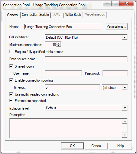 Note: For usage tracking insertions to succeed, the connection pool must be configured with a user ID that has write access to the back-end database. Also, it is recommended that the connectivity type support international data.