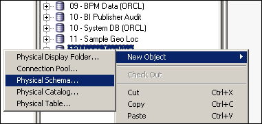 Right-click the 12-Usage Tracking database object and select New Object>Physical Schema.