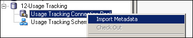 Right-click the Usage Tracking Connection Pool, select Import Metadata, and import the dev-biplatform.S_NQ_ACCT table into 12-Usage Tracking.