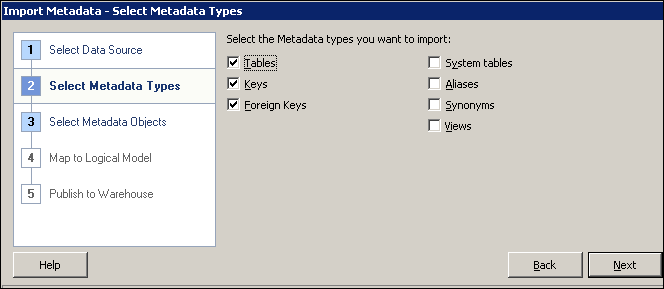Click Next in Step 2, Import Metadata - Select Metadata Types dialog box.