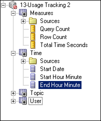 Drag the following three physical columns from Usage Tracking Schema>S_NQ_ACCT to the Time logical table in the 13-Usage Tracking 2 business model. Rename them as follows: