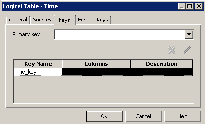 Click the Keys tab and enter Time_key in the Key Name column.