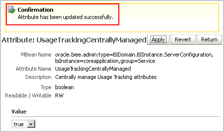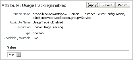 - Return to the BIDomain MBean where group=Service under oracle.biee.admin, Domain:bifoundation_domain, BIDomain.