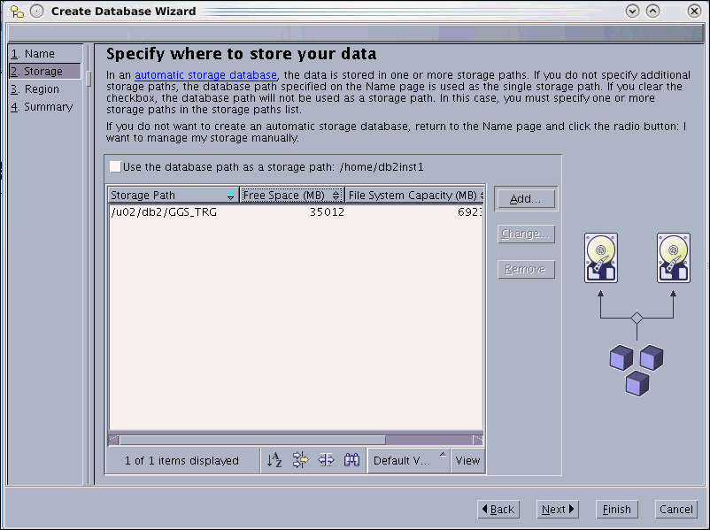 Both Oracle and DB2 have been installed in "standard" locations. IBM DB2 has been installed in /opt/ibm/db2/V9.7 and Oracle 11gR2 has been installed in /u01/app/oracle/product/11.2.0/dbhome_1.