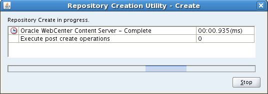 - Step 1. Repository Creation Utility executed to configure the Database for WebCenter Content installation.
