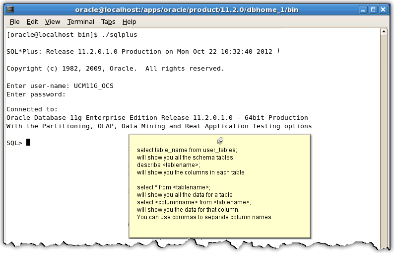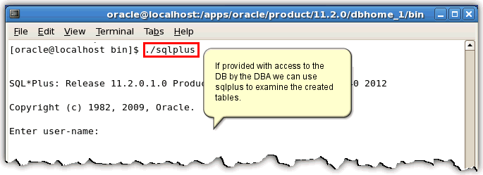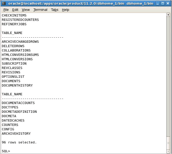 In this topic, you will verify that the table creation has been successful. You will use SQL*PLUS to check the tables.