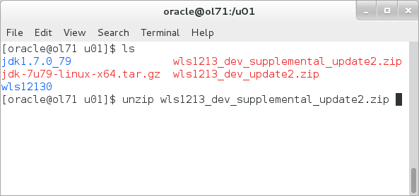 unzip wls1213_dev_update2.zipto install the Zip Distribution in the/u01/wls12130directory.