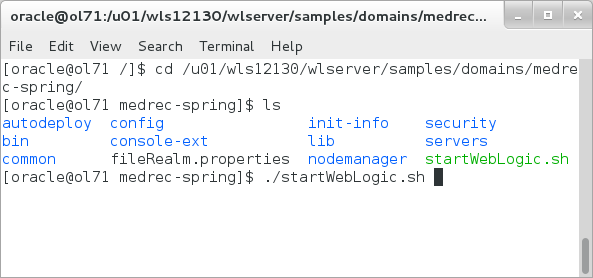 cd /u01/wls12130/wlserver/samples/domains/medrec-springto change to the domain directory. -