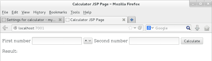 In the browser, navigate to the http://localhost:7001/ URL and the calculator application displays.