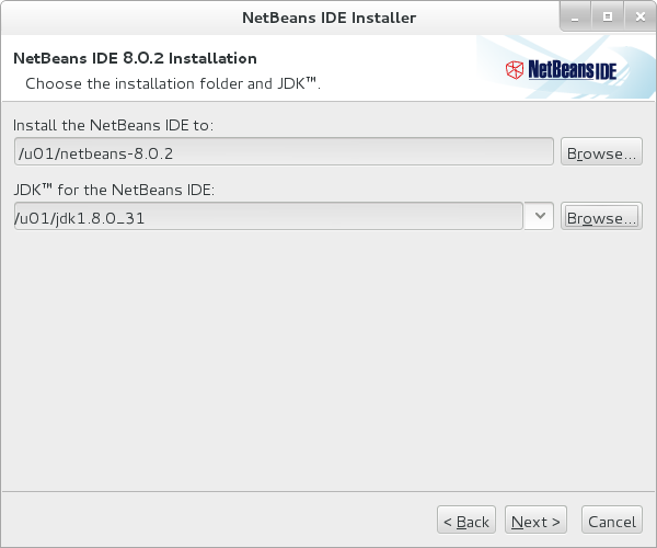 /u01directory and execute./netbeans-8.0.2-linux.shto start the installer.