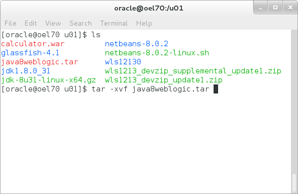 /u01directory.Note: this tutorial uses jdk-8u31-linux-x64.gz - other versions of JDK 1.8 may also work but they have not been tested with this tutorial.