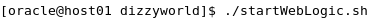 If the administration server of the domain is not already running, it needs to be started. To start it, in a Terminal window, navigate to the domain directory, and enter the command: $ ./startWebLogic.sh