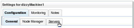 Under the Settings for dizzyMachine1, click the Configuration tab and then the Servers subtab.