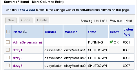 To see a summary of what you have done, under Domain Structure, under Environment, click Servers. In the Servers table on the right, you can see all the servers in the domain and to which machine each is assigned.