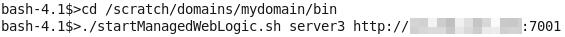 Enter the following command: startManagedWebLogic.sh. This command takes two arguments: