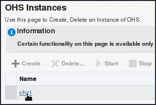 Open the WebLogic Server Domain menu and select Administration then Create/Delete OHS.