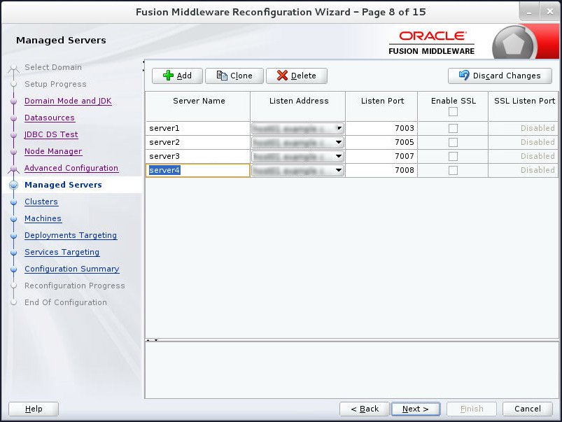 On the Managed Servers screen, you can add, delete, or clone Managed Servers. You can also change the settings for an existing Managed Server.