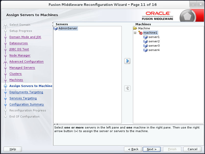 On the Assign Servers to Machines screen, select machine1 in the Machines list box.