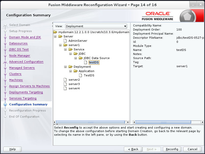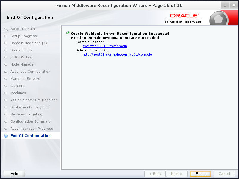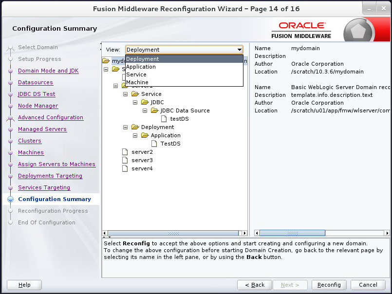 - Visit Reconfiguring WebLogic Domains for more information on Reconfiguration of Weblogic Domains.