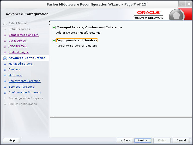 Select Managed Servers, Clusters and Coherence and Deployments and Services options.