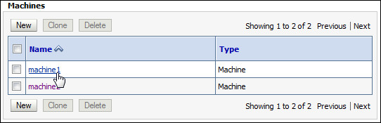 - In the Machines table, click machine1.