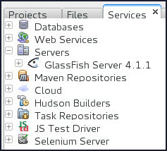 Expand the Servers folder - GlassFish Server is included with NetBeans Enterprise Edition and installed automatically.