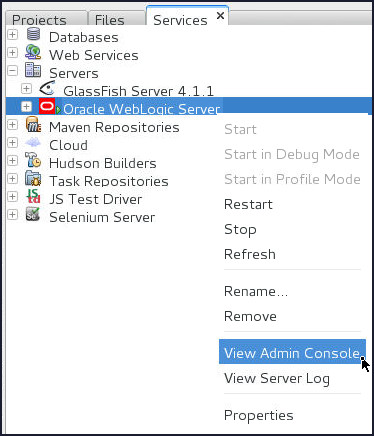 This section will ensure that you have installed WebLogic Server 12c properly and can start the server from NetBeans.