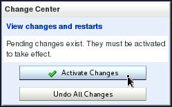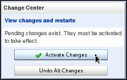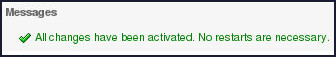 A message appears saying "All the changes have been activated. No restarts are necessary."