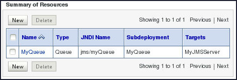 The Connection Factory and Queue will appear as resources in the Summary of Resources for the module.