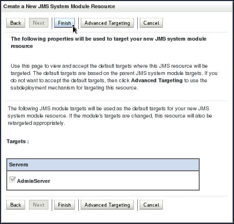 With the new Subdeployment now selected, and your MyJMSServer module as the target, click Finish.