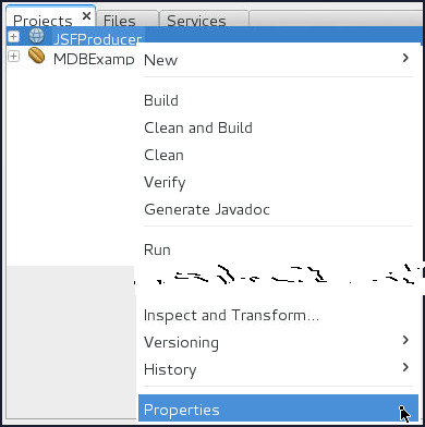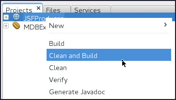 Right-click on the JSFProducer project and click Clean and Build . Repeat this step to Clean and Build MDBExample Project.