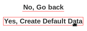 Click Create Default Data and confirm Yes to create data in-memory for the application. The application does not store data in the database and this step is required for the application to function properly.