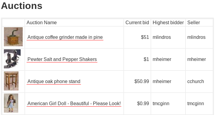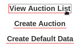 Click Go Home to return to the main page and click View Auction List to view the application's auctions. You should see a list similar to the image below.