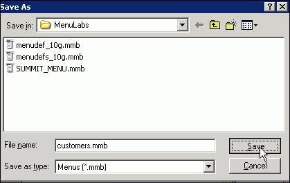 Select File > Save As and save the menu as customers.mmb.
