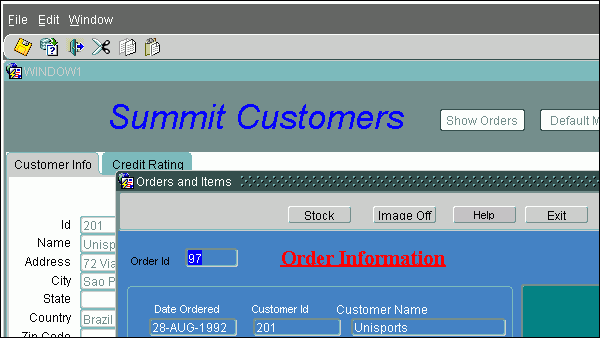 | 6. | Now click Show Orders again. The Orders form inherits the Summit menu.