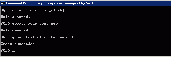 create role test_clerk; create role test_mgr; grant test_clerk to summit;